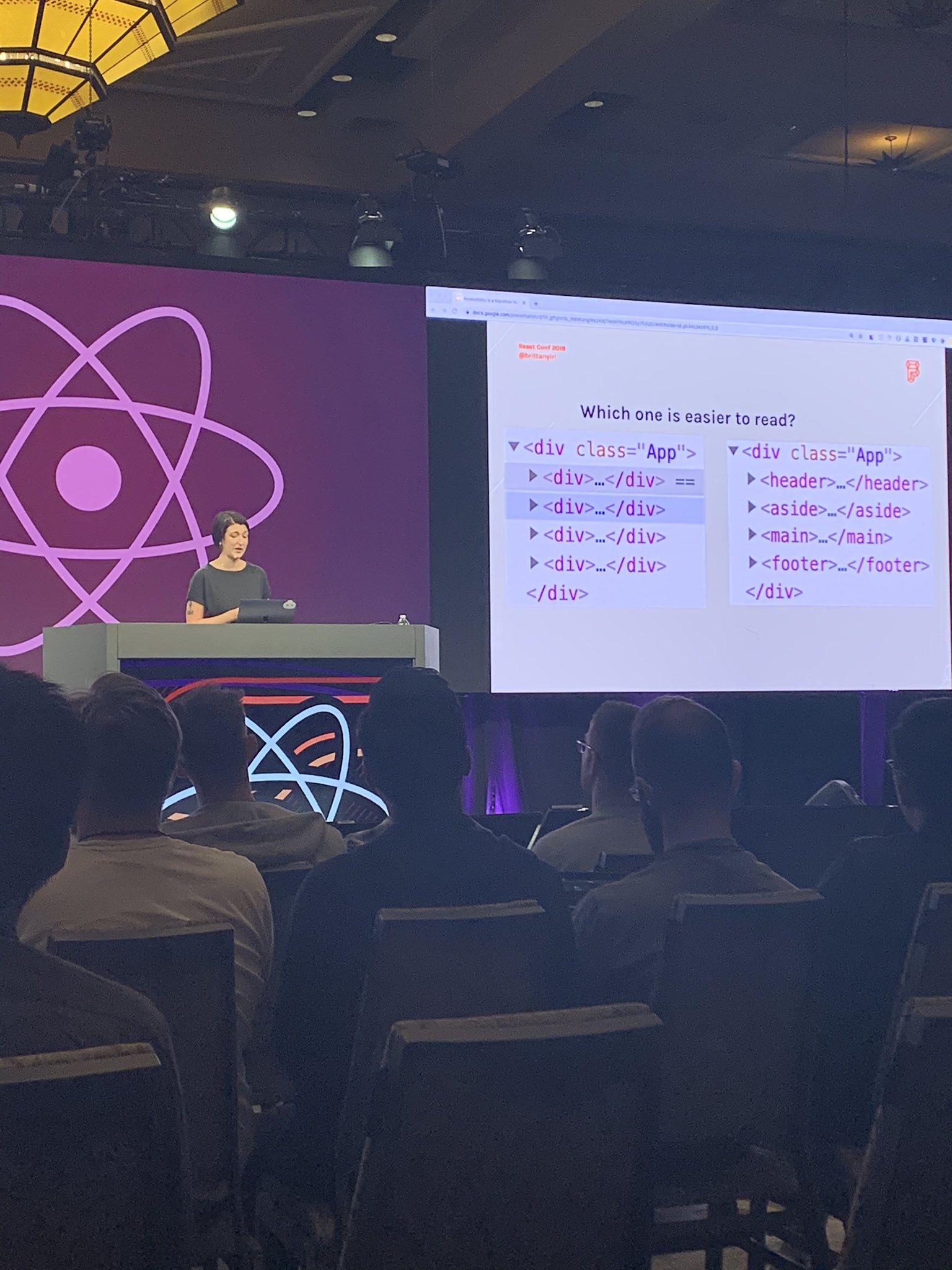 在社区中经常可以看到这样的一个讨论话题:HTML语义化的重要性。其意思是指我们应该尽可能地用正确的HTML标签来表达正确的意图。特别是在现代Web的开发当中(尤其是使用JavaScript框架,比如React和Vue等),在构建Web页面或应用的时候,越来越多的同学不再考虑HTML的语义化。在今年的React Conf大会上@BrittanyIRL分享的Accessibility Is A marathon, Not A Sprint话题中也特别的提到这方面: