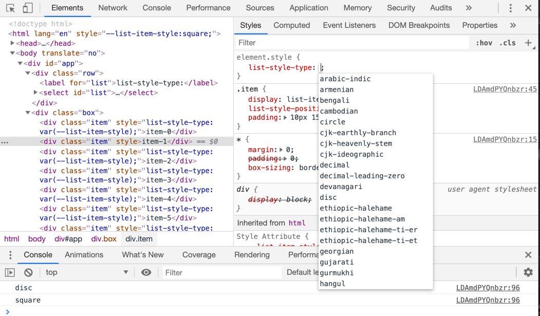 虽然我们在Web的制作中经常会用到列表,但大家可能不会过多的考虑列表相关的属性或使用。就HTML语义化出发,如果遇到无序列表的时候会使用<ul>,遇到有序列表的时候会使用<ol>,但在有些场景(或不追求语义化的同学)会采用其他的标签元素,比如说<div>。针对这个场景,会采用display设置为list-item。如此一来会创建一个块级别的框,以及一个附加的标记框。同时也会自动增加一个隐含列表项计算数器。