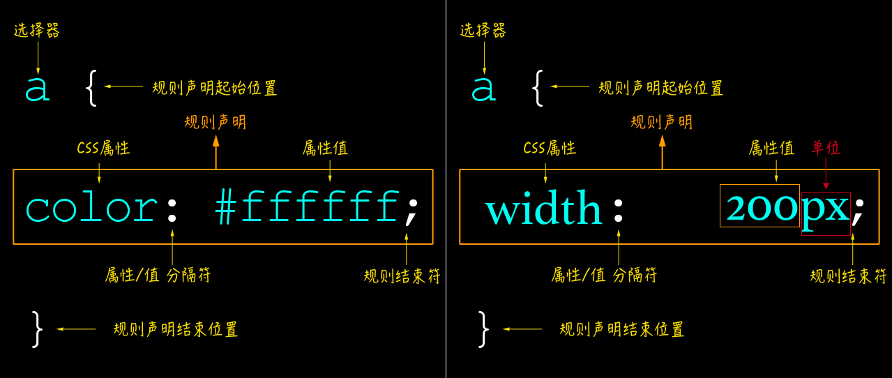 事实上 CSS 是一门非常神奇的学科。我们在声明任何一个 CSS 的规则都可能会包括: