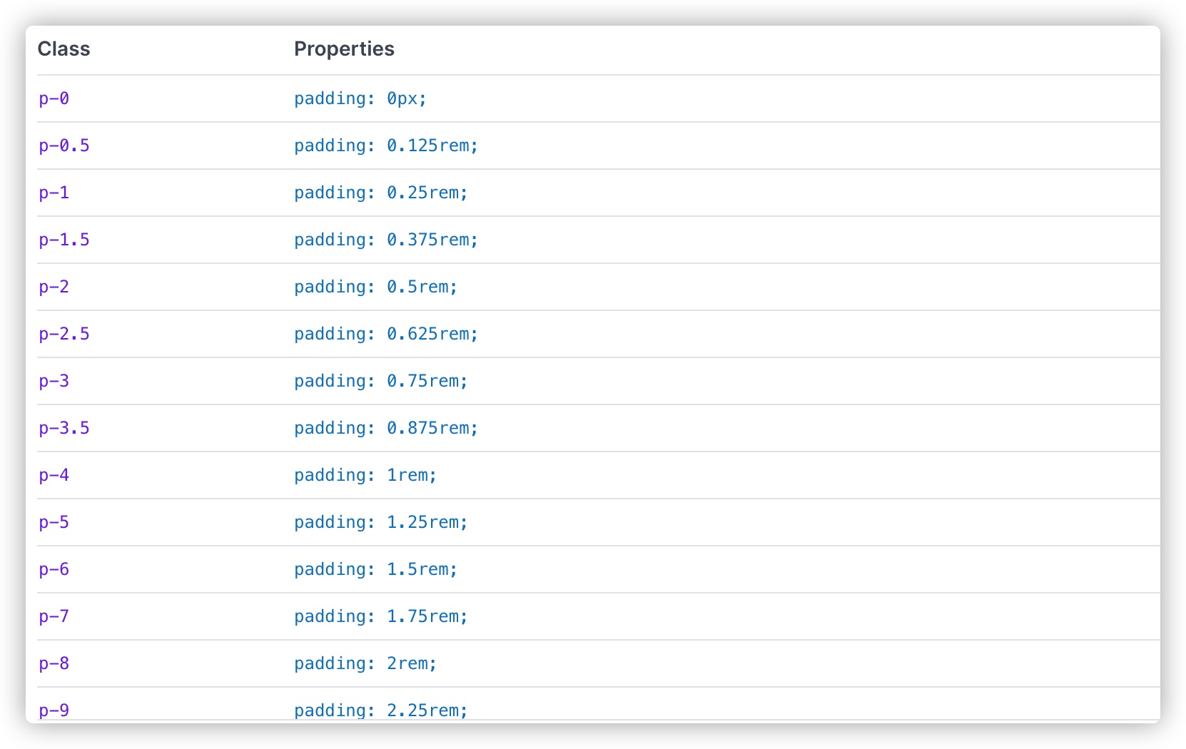 在CSS Frameworks中很多组件都提供了相应的类名来控制组件大小,比如我们熟悉的Bootstrap中的按钮组件,有btn-lg、btn-sm类来调整组件的padding值,CSS Frameworks新起之秀Tailwindcss提供了更多类名来调整组件大小: