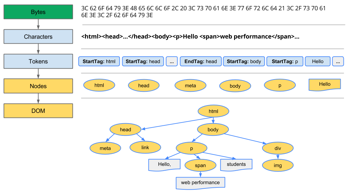 整个流程的最终输出是我们这个简单页面的文档对象模型 (DOM),浏览器对页面进行的所有进一步处理都会用到它。
