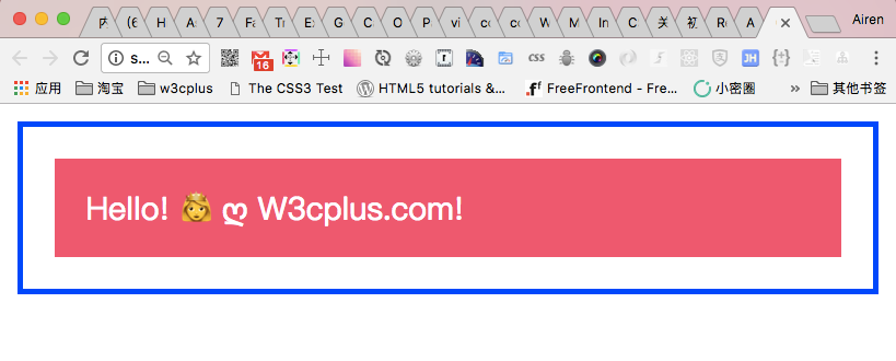 上面看到的效果是我们平时使用的时候效果。如果这个时候,我们在div和strong同时设置all:inherit;时,得到的效果和前面的效果完全不一样: