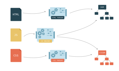HTML 描述了一个页面的结构。为了理解 HTML,浏览器首先会将它转换成一种他们能够理解的格式 – 文档对象模型(Document Object Model) 或者简称为 DOM。 浏览器引擎有这么一段特殊的代码叫做解析器,用来将数据从一种格式转换成另外一种格式。一个 HTML 解析器就能数据从 HTML 转换到 DOM。