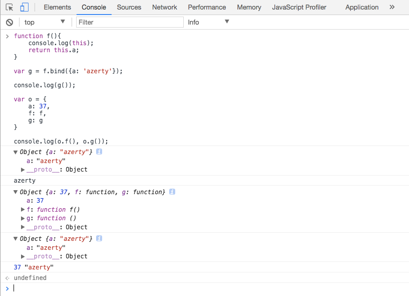 类似的,this的绑定只受最近的成员引用的影响。在下面的这个例子中,我们把一个方法g当作对象o.b的函数调用。在这次执行期间,函数中的this将指向o.b。事实上,这与对象本身的成员没有多大关系,最靠近的引用是最重要的。