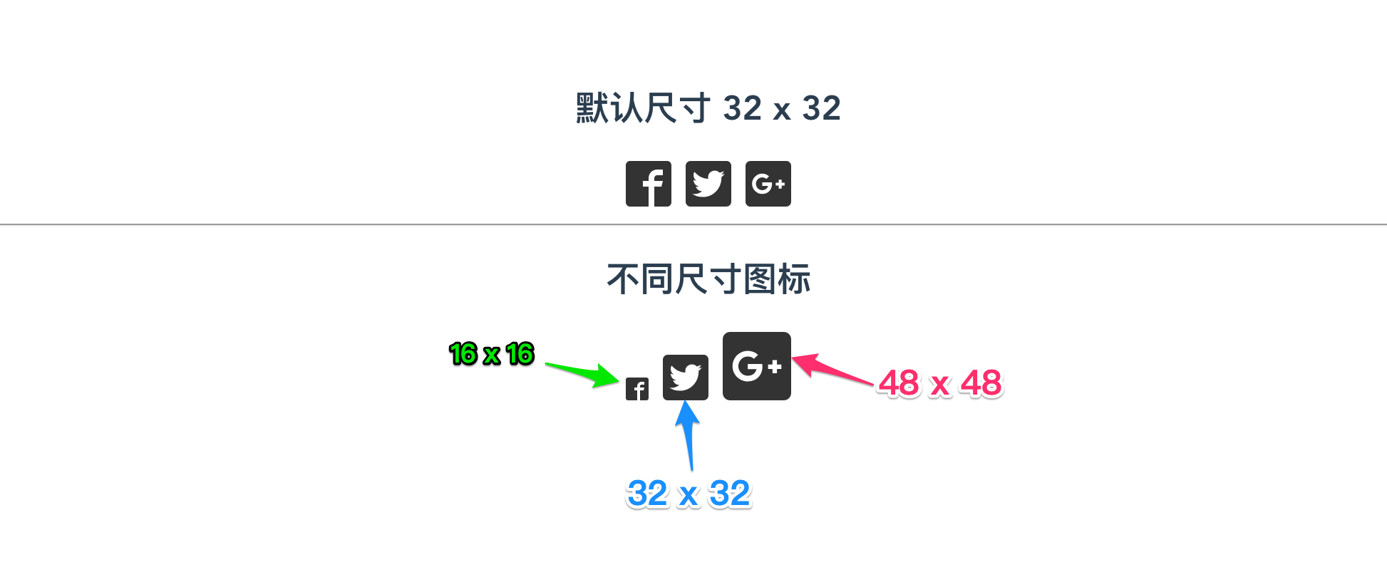 示例中的几个图标,都来自于Font Awesome提供的SVG图标。